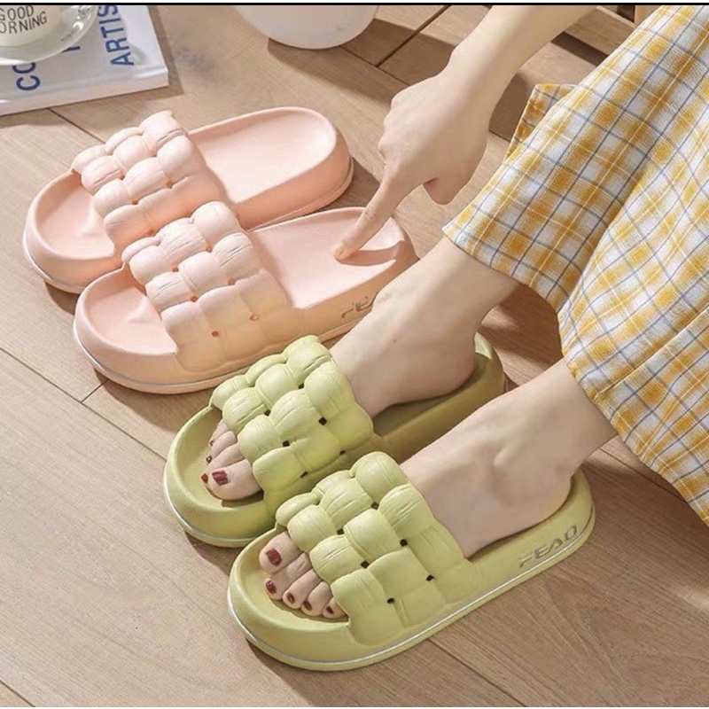 Dép quai ngang nữ hot trend, Dép bánh mì nhăn đi biển siêu nhẹ không bám bẩn