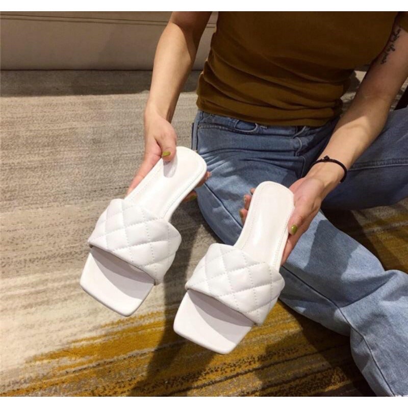 Dép đế bệt nữ quai ngang bản đính đá xoàn giúp thon chân cho người đi bigsize Minhtuyetshoes