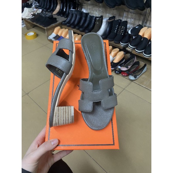 Dép nữ đế cao Guốc Hm 5 phân gót vân gỗ quai da sần xịn xò _ guốc H
