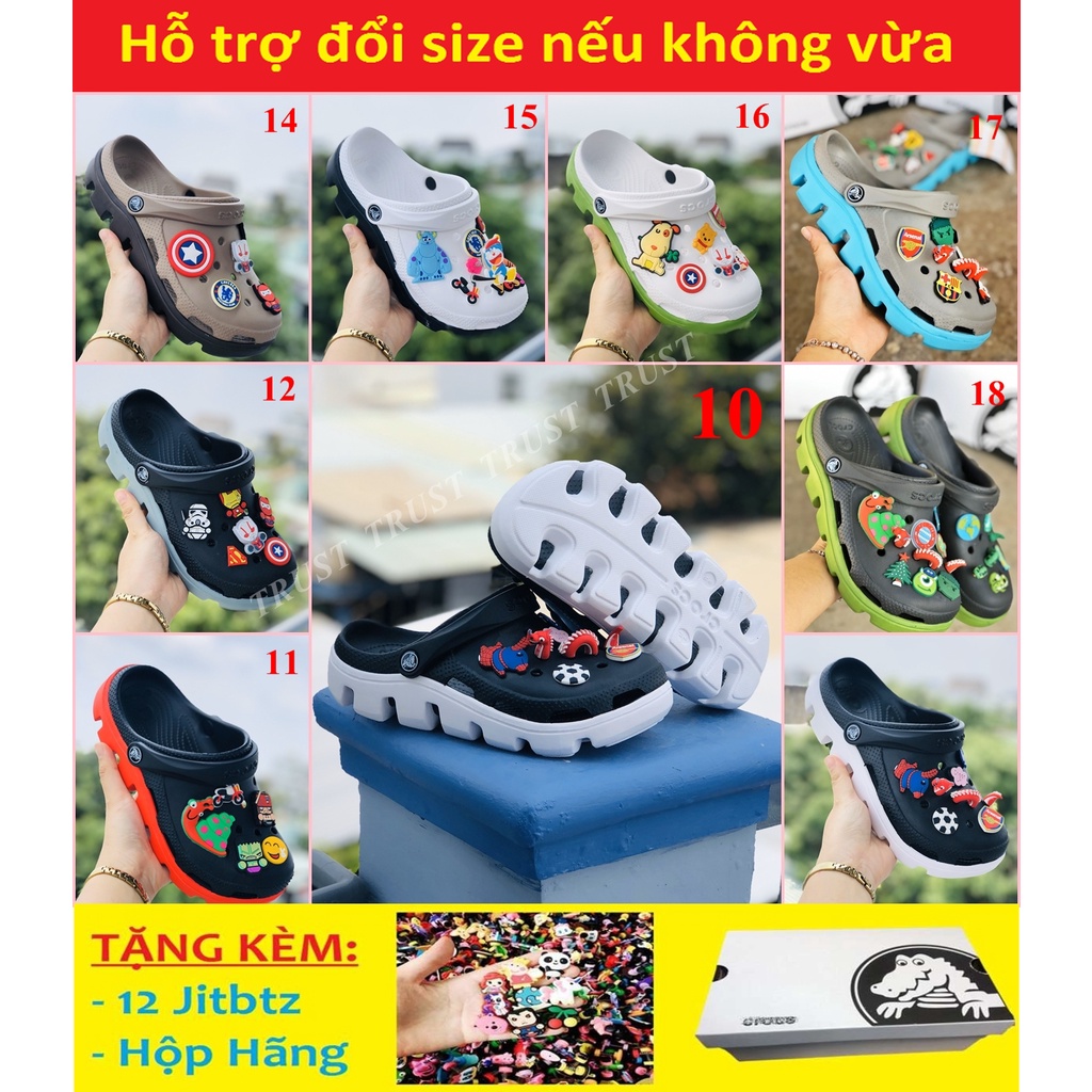 Dép Crocs dép Cross Duet Freeship + 12 sticker dép sục cá sấu bít đầu Quai Ngang Nam nữ kèm tag mác đầy đủ