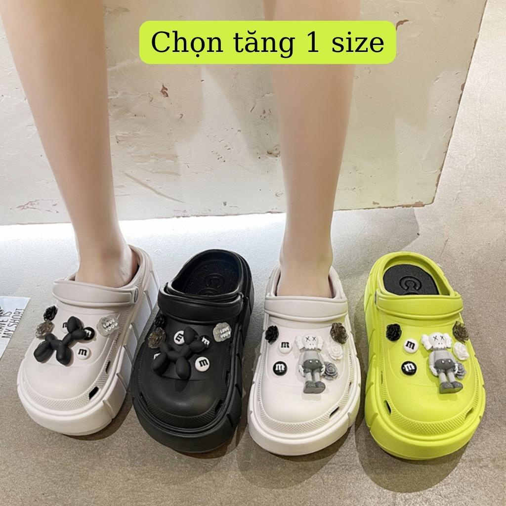 Dép cross nữ 3TDEP, dép sục độn đế 7cm tặng kèm sticker ngọc Bearbrick đi chơi, đi học
