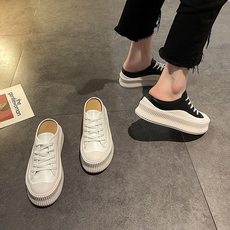 Dép Bánh Mì Đế Dày Tăng Chiều Cao Hở Ngón Bằng Da Mềm Dễ Thương Cho Nữ