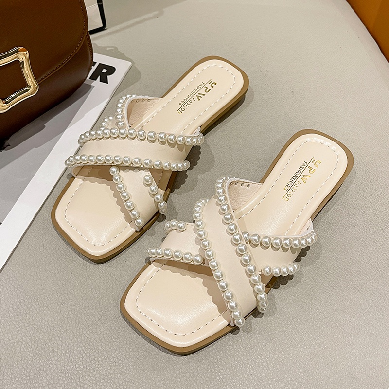 Dép IELGY đế bằng mềm đính ngọc trai thời trang dành cho nữ