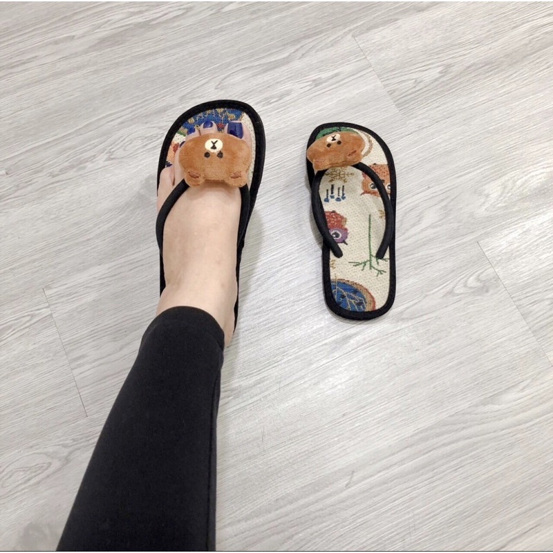 Dép kẹp gấu nữ mặt lót hoa văn xinh xắn và thiết kế dây kẹp quai ống đế nhẹ đi êm - MT Shoes