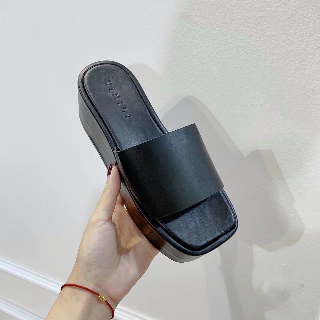 Dép lê da mịn 1 bản ngang to đế bằng cao đen trắng - 4P