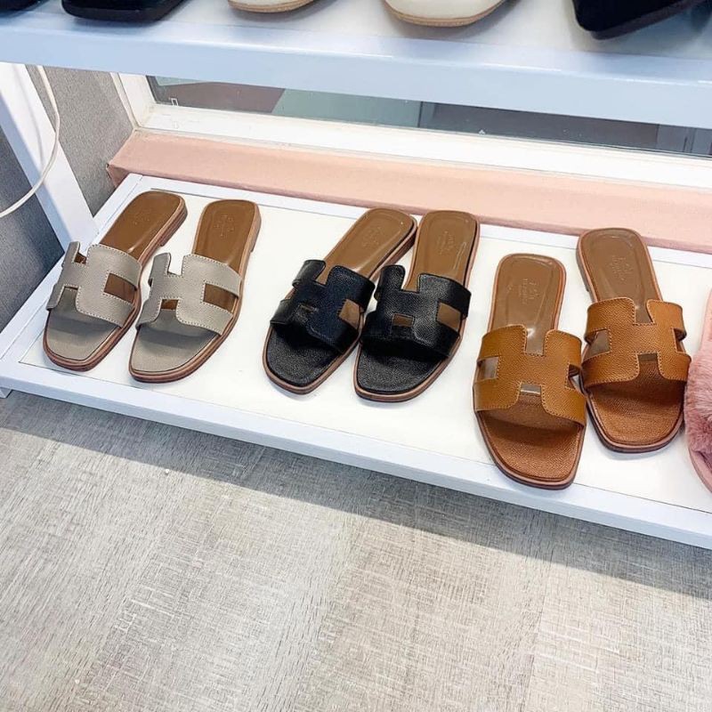Dép quai ngang,Dép lê HM da quai dán đế 3cm cực hot-Dép nữ cao cấp 2023