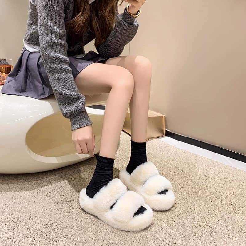 Dép Lông Thời Trang Nữ, Dép Lông Đế Cao Lông Mềm