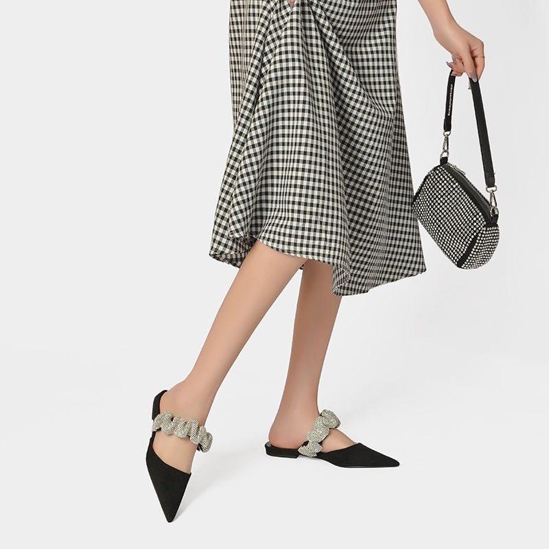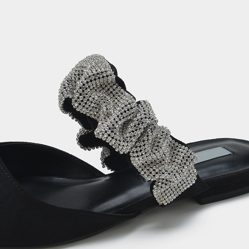 Dép mũi nhọn đế bằng đính đá lấp lánh thời trang nữ phong cách Hàn Quốc