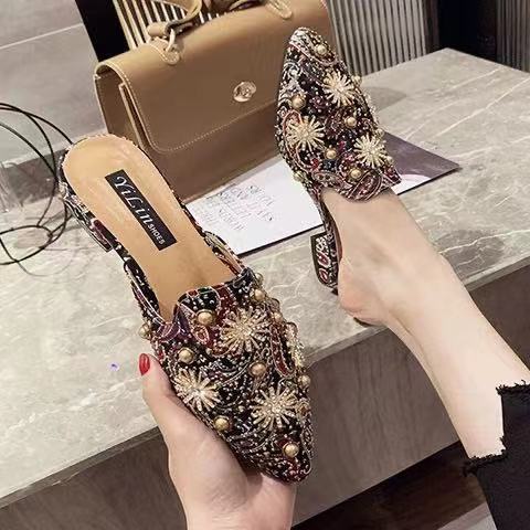 Dép Sandal Cao Cấp Mũi Nhọn Đính Đá Sang Trọng Phong Cách Hong Kong Thời Trang Cho Nữ