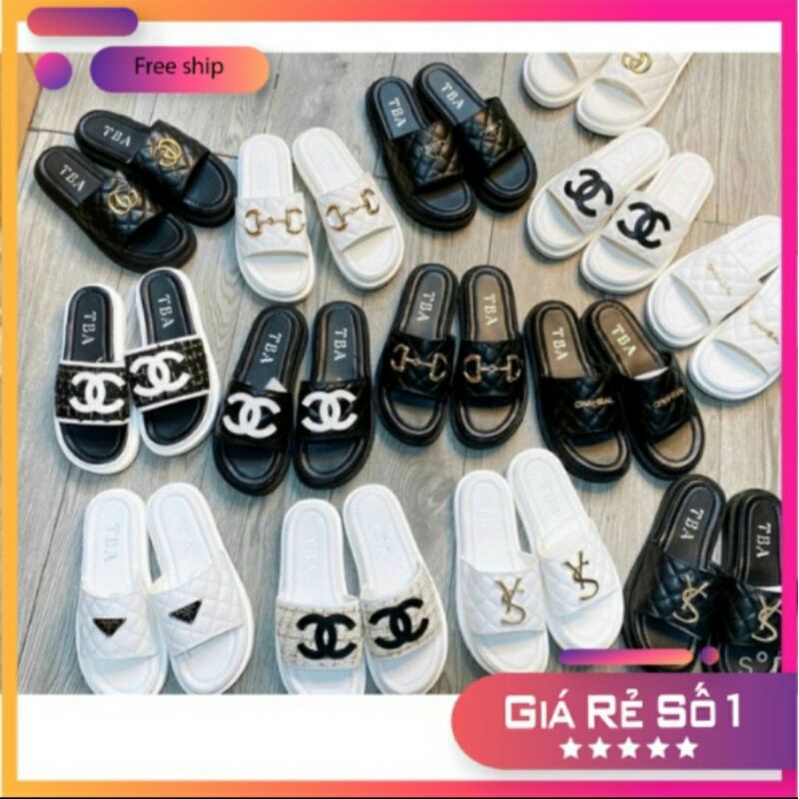 Dép Nữ Quai Ngang Đế Bằng Đính Đá Chữ C Sang Chảnh