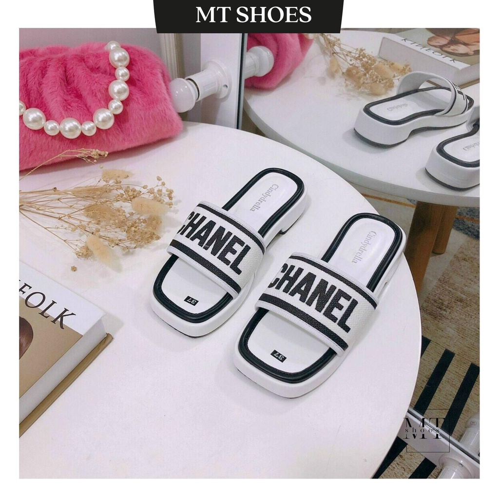 Dép nữ quai ngang đế bọc mũi vuông cao 2f chất canvas siêu êm phong cách Hàn Quốc