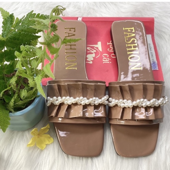 Dép nữ quai ngang nhún bèo đính ngọc bánh bèo - dép kiểu nữ đế bệt thời trang