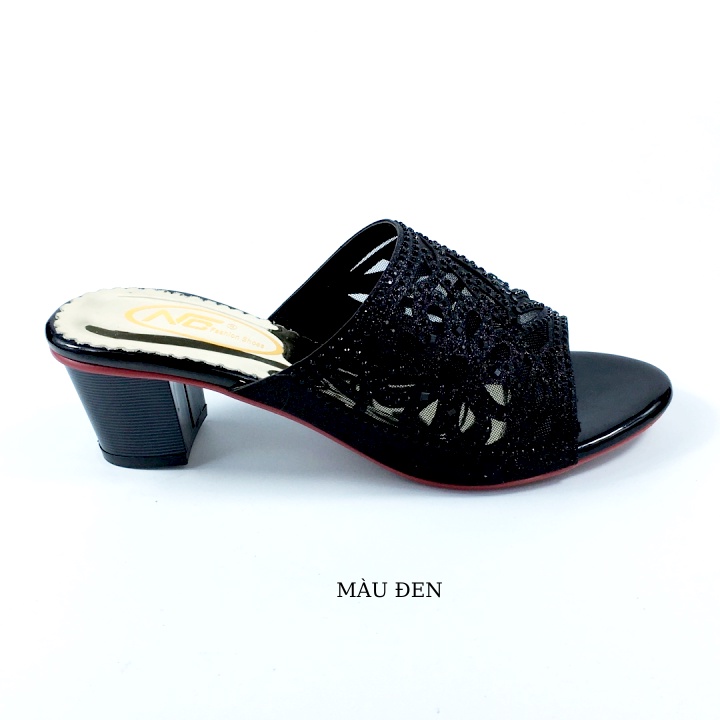 Dép nữ trung niên cao cấp size lớn cho mẹ và bà , Guốc cao gót 5 phân big size 38-42 quai đính đá sang trọng- DN 111