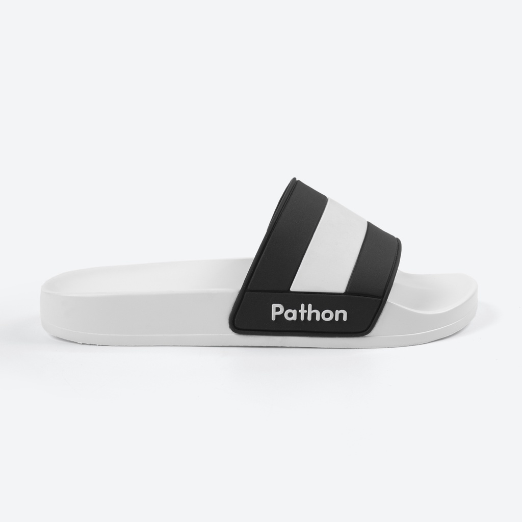 Dép nam nữ quai ngang slipper Pathon quai PVC và đế PU trắng quai sọc trắng đen lớn SD39