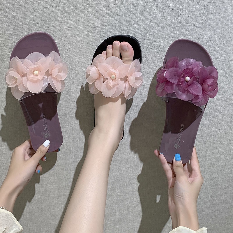 Dép Nhựa Trong Suốt Đính Hoa Tím Chống Trượt Thời Trang Hàn Quốc Cho Nữ