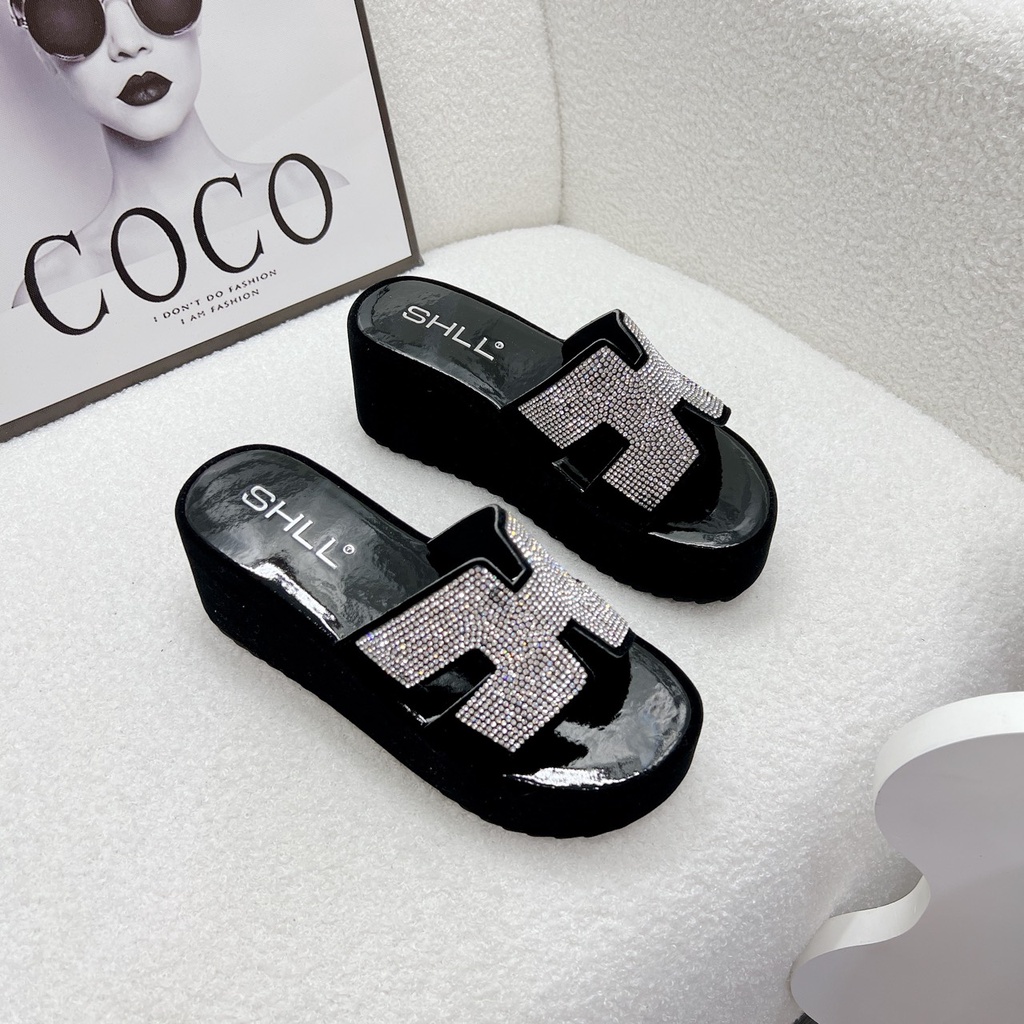 Dép nhung đế xuồng quai chữ H đính đá cao 7 phân form chuẩn siêu êm chân cực dễ mang