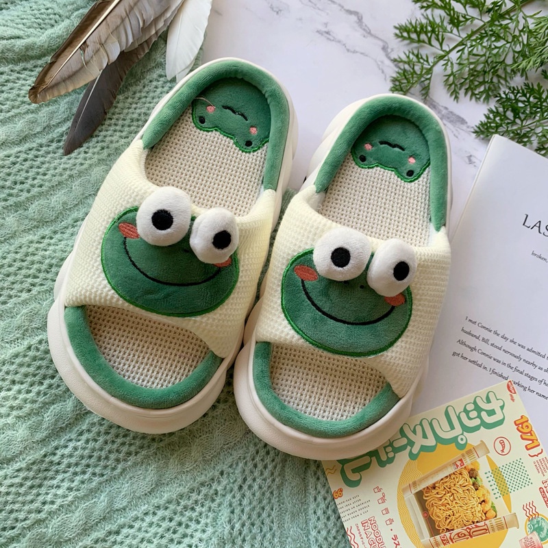 Dép quai ngang nữ ếch xanh, dép bông đế cao đi trong nhà cực êm chân hot hit