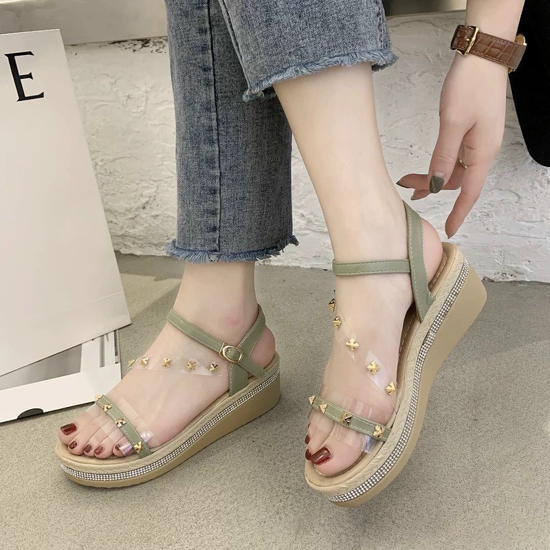 Giày mùa hè Giày đi làm cho học sinh Bàn chân thoải mái bánh mì sandal nữ đế cao xăng đan