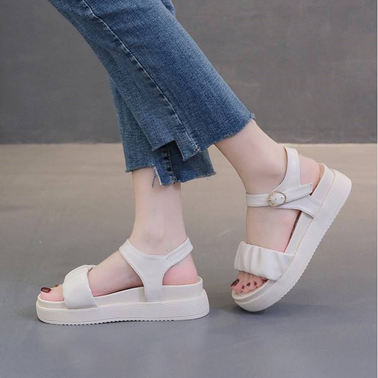 Dép Sandal Đế Xuồng Gót Vừa Dễ Phối Đồ Thời Trang Mùa Hè Phong Cách La Mã Dành Cho Nữ Đi Biển
