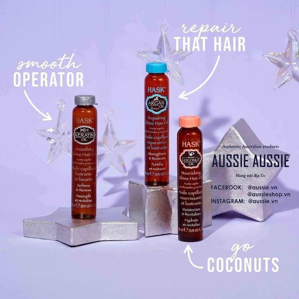 Dầu dưỡng phục hồi và bóng tóc khô xơ chẻ ngọn làm dày tóc HASK Argan Oil/ Keratin Oil 18ml 59ml aussie.vn