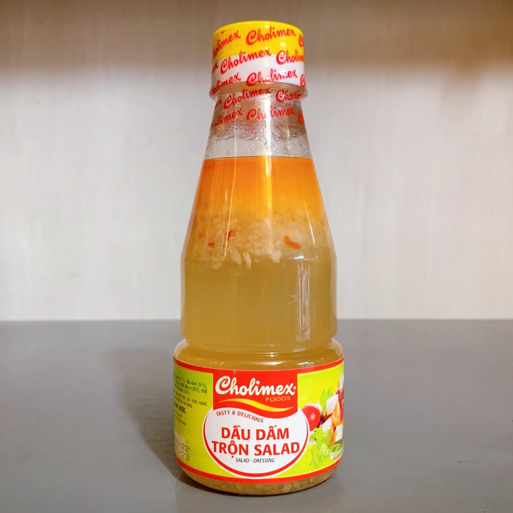 Sản xuất tại Việt Nam Thương hiệu Cholimex (Việt Nam) Loại Dầu giấm trộn salad Độ chua Chua ngọt Dung tích 270g Công dụng: Dùng để trộn các món salad, gỏi chua, ăn khai vị. Lắc đều trước khi sử dụng. Hạn sử dụng: 12 tháng. Giới thiệu sản phẩm: - Dầu Dấm Trộn Salad Ch