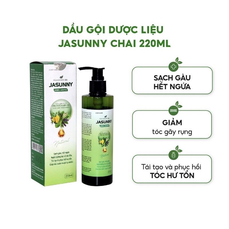 Dầu Gội Dược Liệu JASUNNY Sạch Gàu Hết Ngứa, Dưỡng Tóc Mềm Mại Suôn Mượt Tự Nhiên Chai 220ml