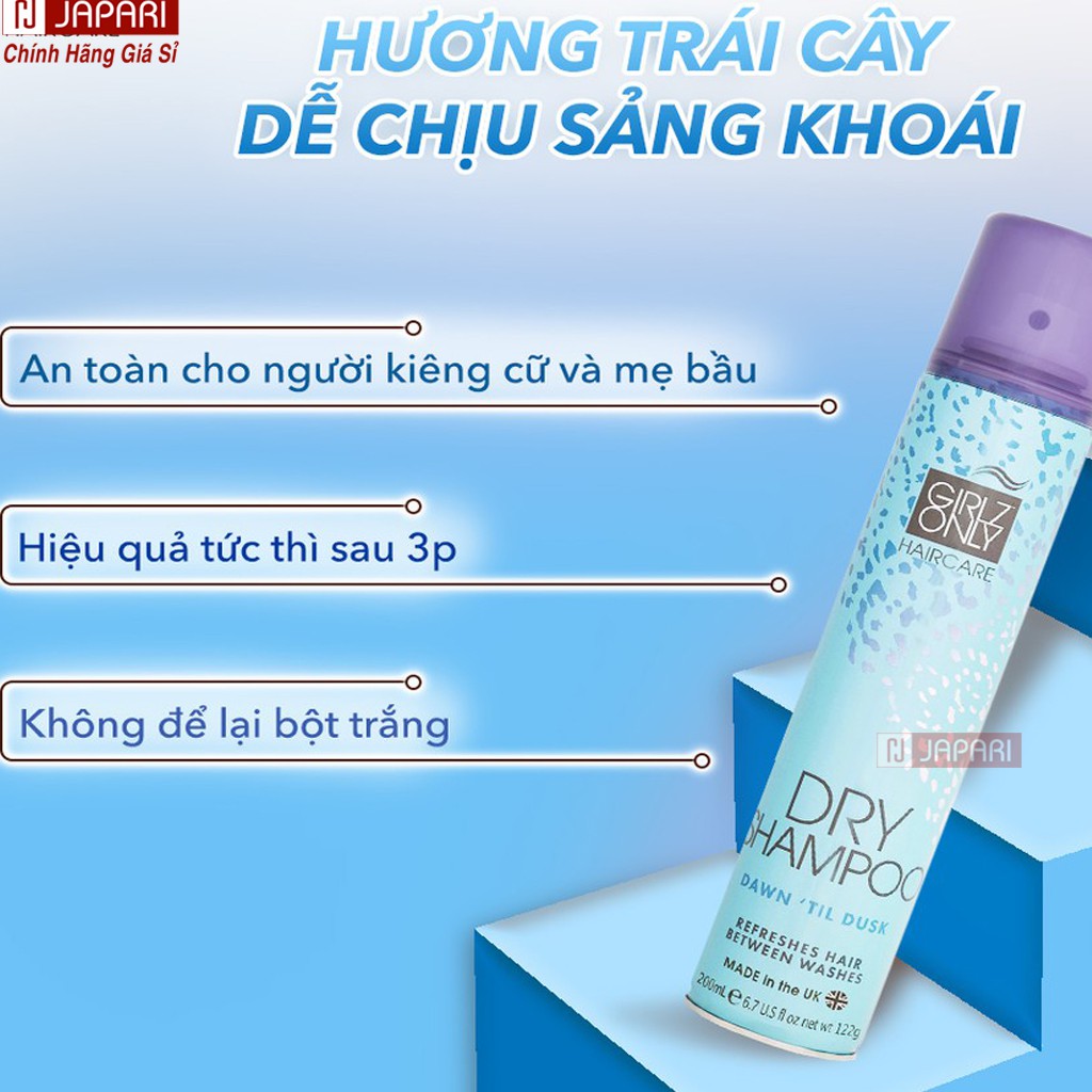 Dầu Gội Khô Girlz Only Dry Shampoo Dạng Xịt 200ml CHÍNH HÃNG- Dầu Gội Đầu Khô Girl Only Cam Phồng Tóc Hết Bết Tóc JAPARI