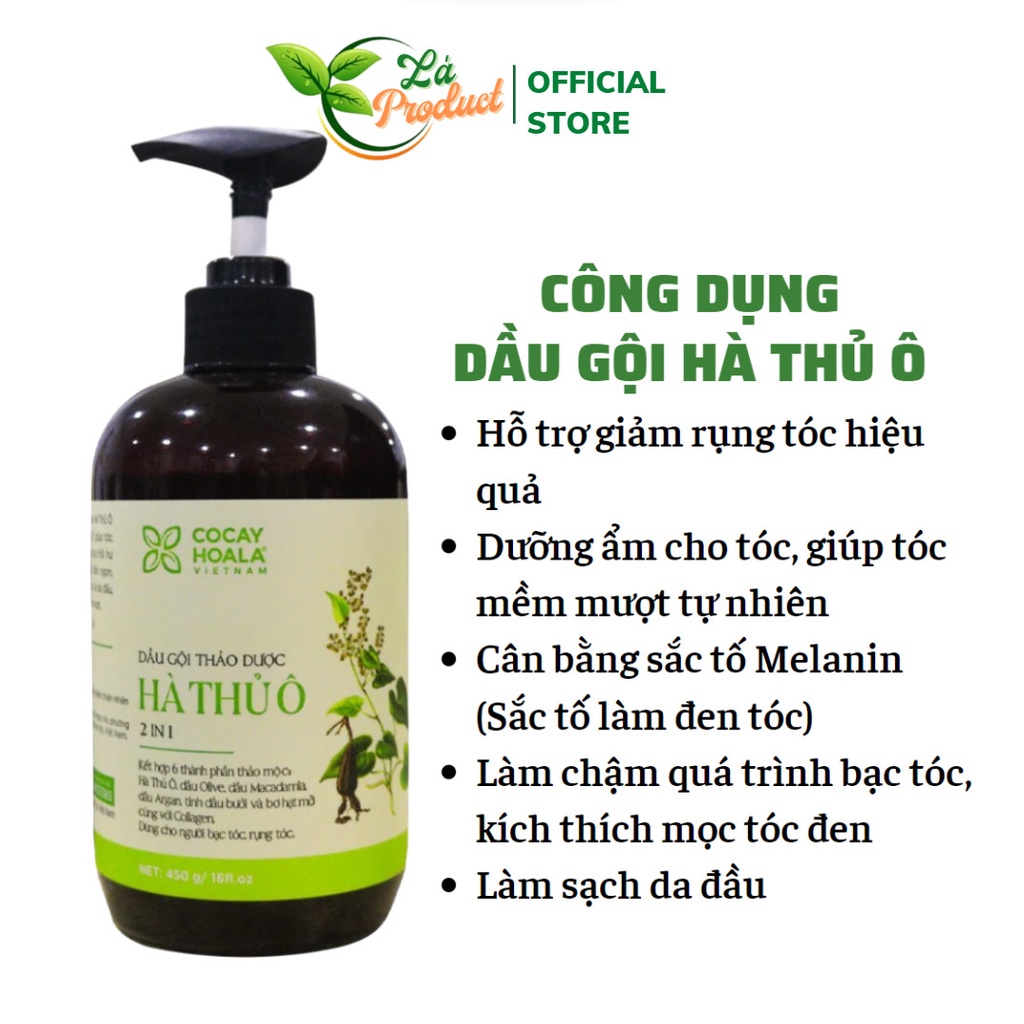 Dầu gội thảo dược hà thủ ô 2in1 giảm ngứa da đầu, giảm rụng tóc bạc tóc, làm sạch gàu cỏ cây hoa lá 300g 450g