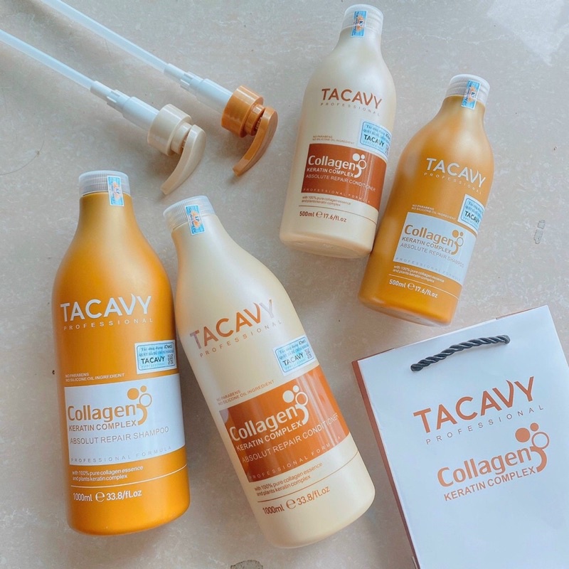 Cặp dầu gội xả TACAVY collagen phục hồi hư tổn, khô sơ gãy dụng hàng chuẩn công ty