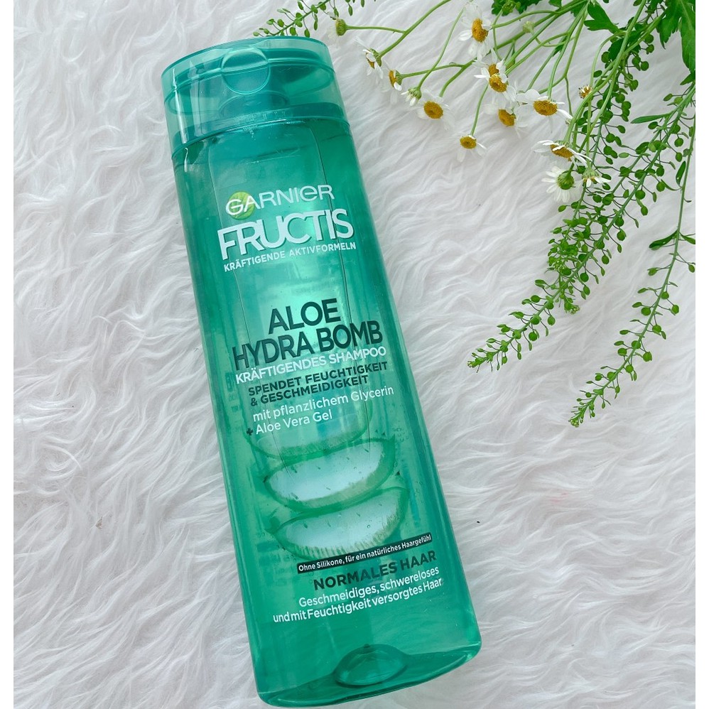Cặp Gội & Xả Garnier Fructis Aloe Hydra Bomb ( Nha đam ) 🌱 🇩🇪 Sản phẩm của Đức Sản phẩm cấp ẩm cấp tốc cho tóc khô và hư tổn ** Giá: #200k/chai ( gội 300ml; xả 250ml) => #360k/cặp ——— 🌱 Khám phá Aloe Hydra Bomb mới với gel lô hội và glycerin thực vật có nguồn gốc tự