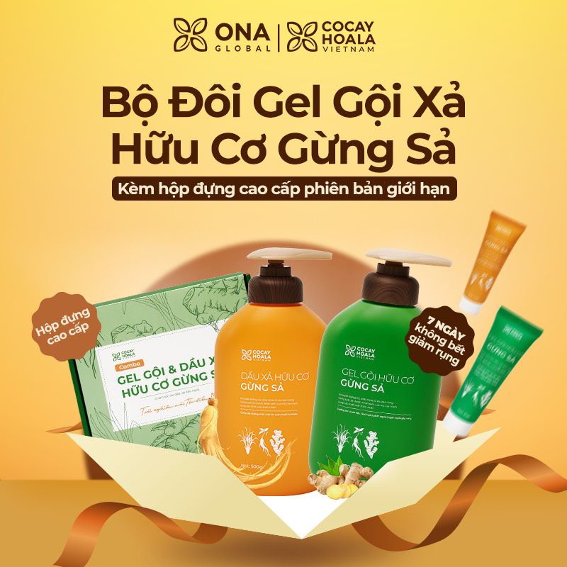 GEL GỘI - DẦU XẢ HỮU CƠ GỪNG SẢ CỎ CÂY HOA LÁ VIỆT NAM 1. Thương hiệu: COCAYHOALA VIETNAM 2. Xuất xứ: Việt Nam 3. Tình trạng: mới 4. Trọng lượng: Gel gội gừng xả 500g, dầu xả gừng sả 500g 5. Tại sao nên sử dụng dầu gội xả hữu cơ gừng sả - Ngăn tóc bết dầu Giúp kiềm dầu và tăng độ phồng cho tóc. Từ đó, kéo dài thời gian tóc bồng bềnh, giữ mái tóc dầu lâu bị bết dính hơn " - Giảm gãy rụng và khô xơ Giúp cân bằng dầu, vừa dưỡng, vừa phục hồi, cấp ẩm vượt trội giúp nang tóc chắc khỏe dù bị hư tổn nặng nề từ việc nhuộm hay tẩy tóc - Sạch gầu và giảm ngứa da đầu Sử dụng nước gừng nguyên chất để kháng khuẩn, kháng nấm, giảm ngứa, tăng cường tuần hoàn máu để loại bỏ bã nhờn, dầu thừa, mồ hôi, tế bào chết, và bụi bẩn" - Tóc mềm mượt gấp 2 lần Kết hợp cùng dầu xả giúp nuôi dưỡng tóc từ sâu bên trong, dưỡng tóc mềm mượt óng ả gấp 2 lần ngay sau lần đầu sử dụng 6. Thành phần: Gừng tươi đạt chuẩn ISO: Giảm ngứa, tăng cường tuần hoàn máu giúp thư giãn da đầu và duy trì độ ẩm phù hợp cho tóc - Sả: Giảm tình trạng rụng tóc, đặc biệt tốt với người có mái tóc mỏng, thưa, dễ bị gãy rụng, từ đó cung cấp nhiều dưỡng chất nuôi dưỡng tóc ngăn ngừa gãy rụng, khô xơ - Nhân sâm: Chứa nhiều Ginsenosides bắt các gốc tự do, kích thích sự trao đổi chất, kiềm dầu hiệu quả 7. Hướng dẫn sử dụng: - Làm ướt tóc, thoa gel gội gừng sả lên tóc và massage nhẹ nhàng trong khoảng 5-10 phút.( chú ý massage da dầu 5-10 phút để tinh dầu gừng thẩm thấu và giúp làm ấm da đầu phát huy hiệu quả tốt nhất) - Xả sạch tóc với nước cho đến khi không còn bọt. - Thoa dầu xả gừng sả vào ngọn tóc, tránh thoa trực tiếp vào chân tóc và da đầu. Massage hoặc ủ trong khoảng 5-10 phút. - Xả lại tóc bằng nước sạch. Dùng khăn mềm lau khô tóc, để tóc khô tự nhiên. #gelgoigungsa #7ngaykhongbetgiamrung, #tocbet #tocbetdau #moctoc #giamrungtoc