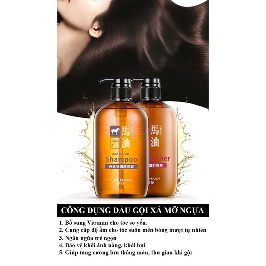 Dầu Gội Xả Mỡ Ngựa Horse Oil Không Silicon Mềm Mượt tóc 600ml Nhật Bản