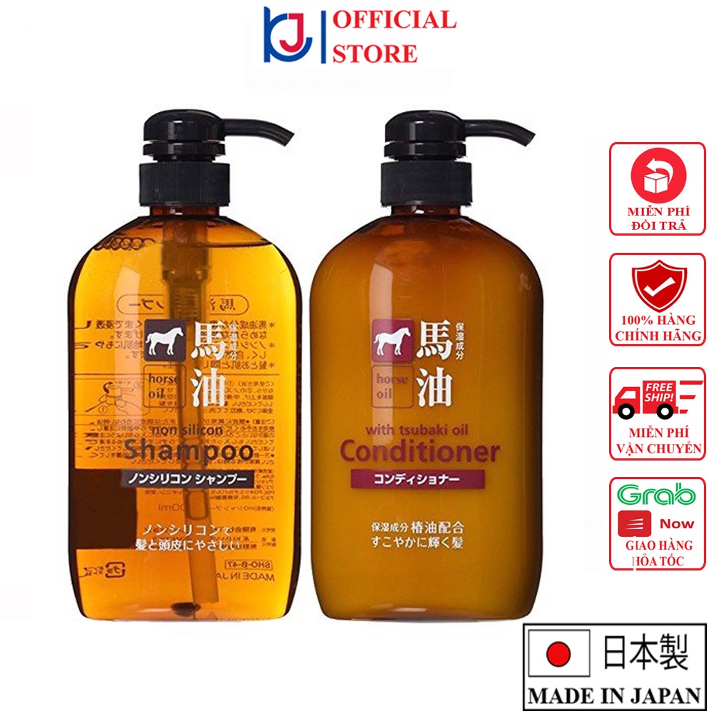 Dầu gội mỡ ngựa - Dầu xả & Sữa tắm chiết xuất mỡ ngựa Horse Oil 600ml Nhật Bản