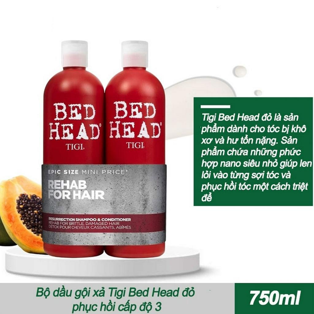 Dầu Gội Xả Tigi Đỏ Bed Head Phục Hồi Cấp Độ 3 - 750ml Cặp Dầu Gội Đầu Xả Phục Hồi Tóc Hư Tổn