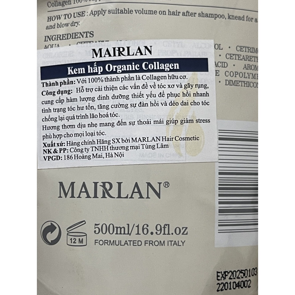 Dầu Hấp Ủ Tóc Mairlan Collagen Siêu Mượt Phục Hồi Tóc Khô Xơ, Gãy Rụng