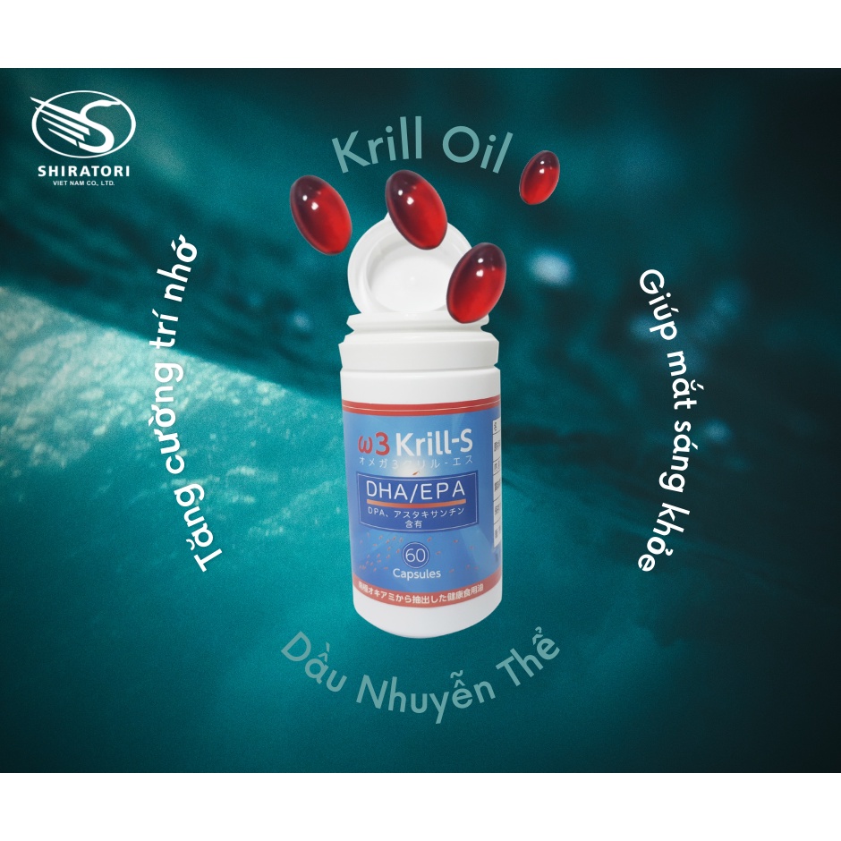 Dầu Nhuyễn Thể Omega 3 Krill-S SHIRATORI - Bổ não, giảm cholesterol, giảm đau xương khớp - 60 viên