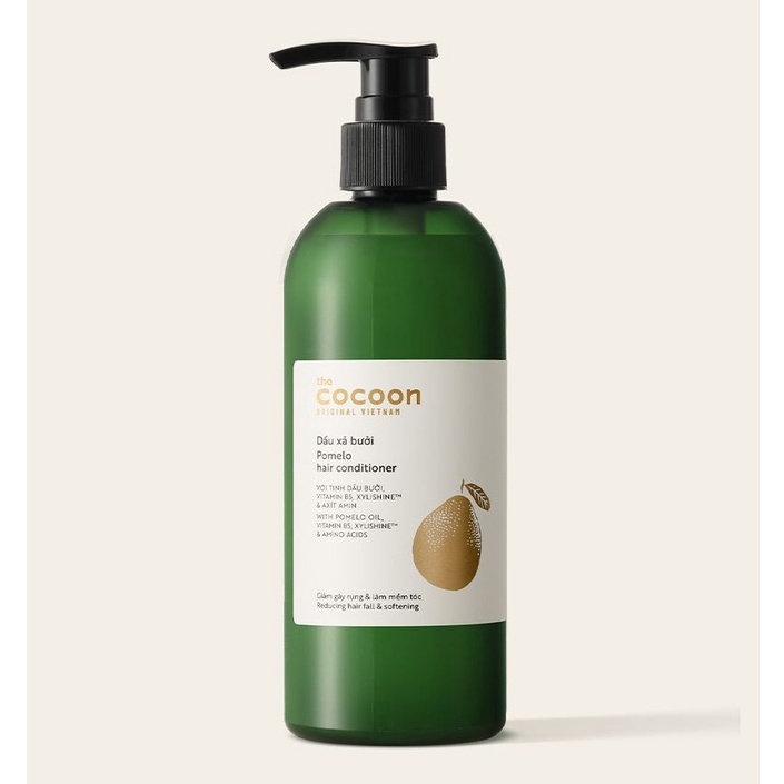 DẦU XẢ BƯỞI COCOON 310ML GIÚP TÓC SUÔN MƯỢT GIẢM GÃY RỤNG KHÔ XƠ Sự kết hợp hài hoà giữa tinh dầu bưởi Việt Nam truyền thống, vitamin B5 và hoạt chất dưỡng ẩm Xylishine™ đã tạo nên dầu xả bưởi giàu dưỡng chất giúp giảm gãy rụng và làm mềm từng sợi tóc, mang lại mái t