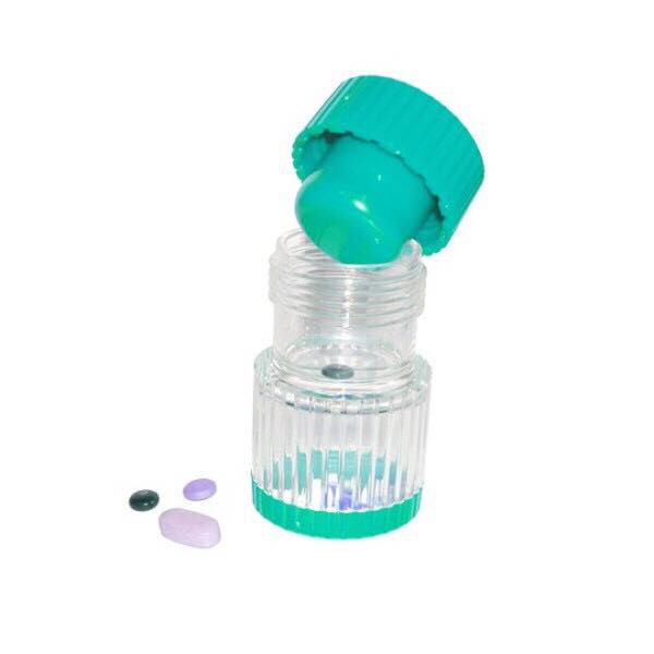 Hướng dẫn sử dụng: - Nghiền thuốc: Cho thuốc vào ngăn nghiền, vặn nắp từ 2 đến 4 lần. - Cắt thuốc: Đặt thuốc vào rãnh định vị nắp có mõm, dùng tay ấn thân vào nắp cho đến khi thuốc được cắt hoàn toàn. - Đựng thuốc: Mở nắp tại mặt lõm của nắp lớn, cho thuốc vào ngăn ch