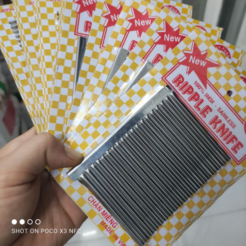 chỉ 9k 1 cái. Loại có cán 15k 1 cái Dao gợn sóng dao cắt củ quả, cắt thạch rau câu.... chất liệu inox Bền, dễ sử dụng, cắt bén, nhanh