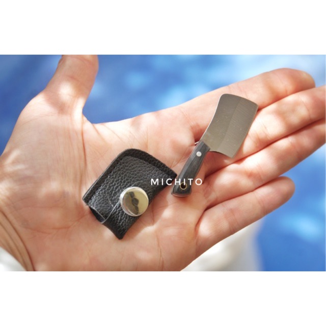 Dao nấu ăn mini cắt được thật, Sắc, Cán gỗ kèm vỏ da + Hộp sắt + Dây đeo