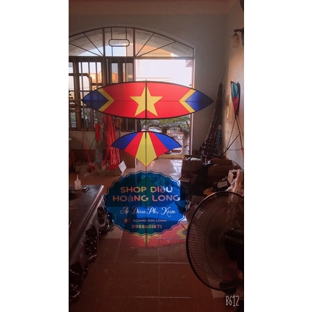 Diều lắp ghép cờ đỏ phối vàng xanh vải rip kích cỡ: 3m khung thẳng khung cacbon - pass inox hàn phi 12 - Thả gió từ 20 đổ lại ( gần như bão ) 0988601871