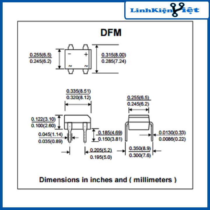 Diode cầu 1A DB107S chân dán SMD điện áp 1000V