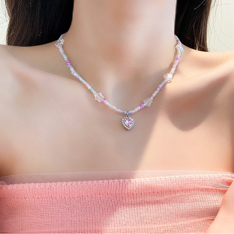 Dopamine Vòng cổ Đính Đá zircon Trái Tim Năm Cánh Cá Tính