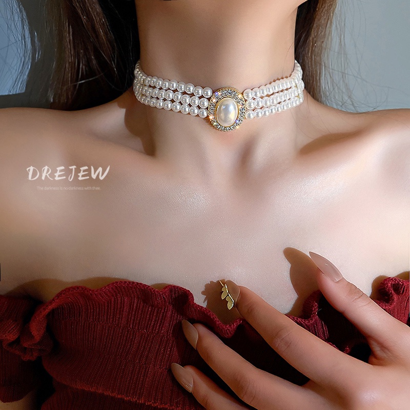 DREJEW Vòng cổ Nhiều Lớp Đính Ngọc Trai Phong Cách Hàn Quốc Thời Trang