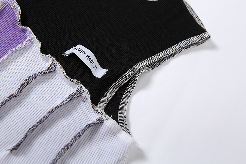 DUNEA Áo croptop cổ tròn phối màu tương phản sành điệu cho nữ