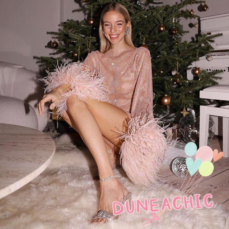 DUNEA Đầm kiểu phối lưới xuyên thấu gợi cảm thời trang dành cho nữ