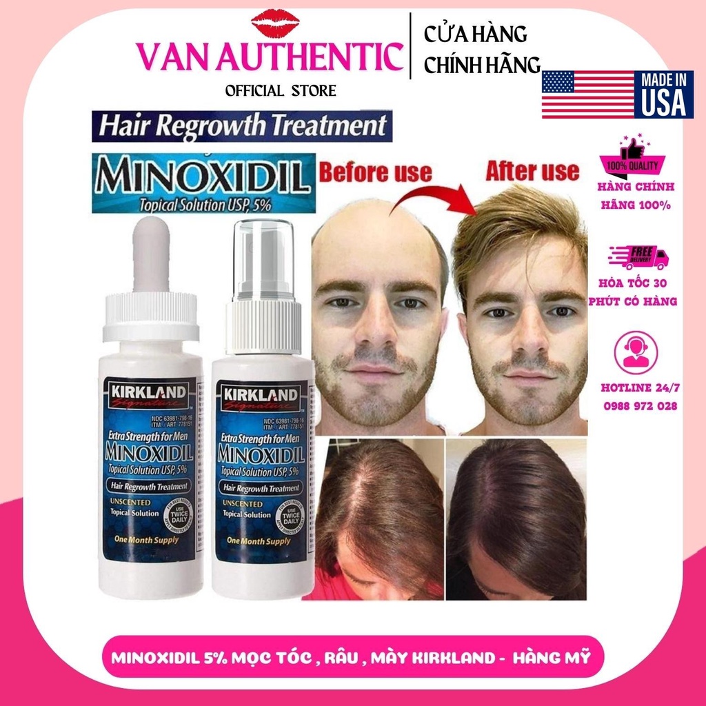 Dung dịch thoa ngoài Mọc tóc, mọc Râu Minoxidil 5% Kirkland USA FDA Approved .