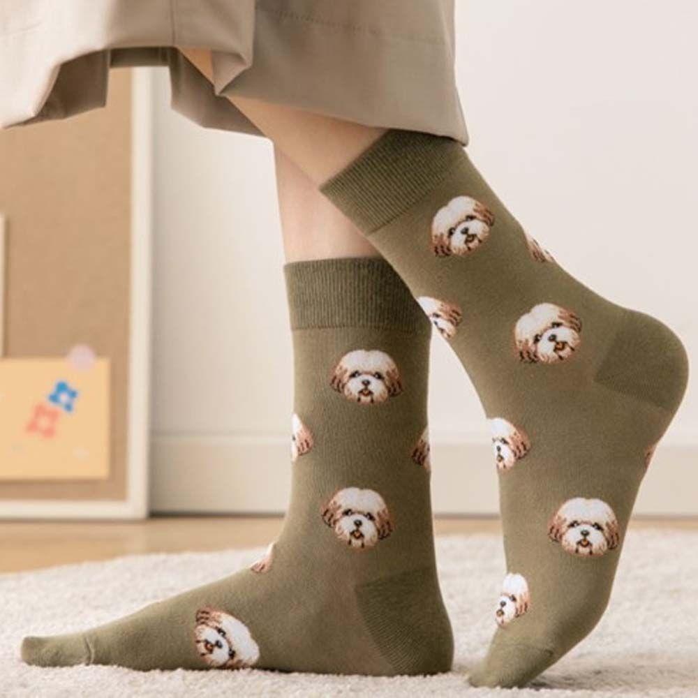 E Rich Tất cotton Cổ Vừa In Họa Tiết Chó shiba inu Thời Trang Phong Cách Đại Học Nhật Bản