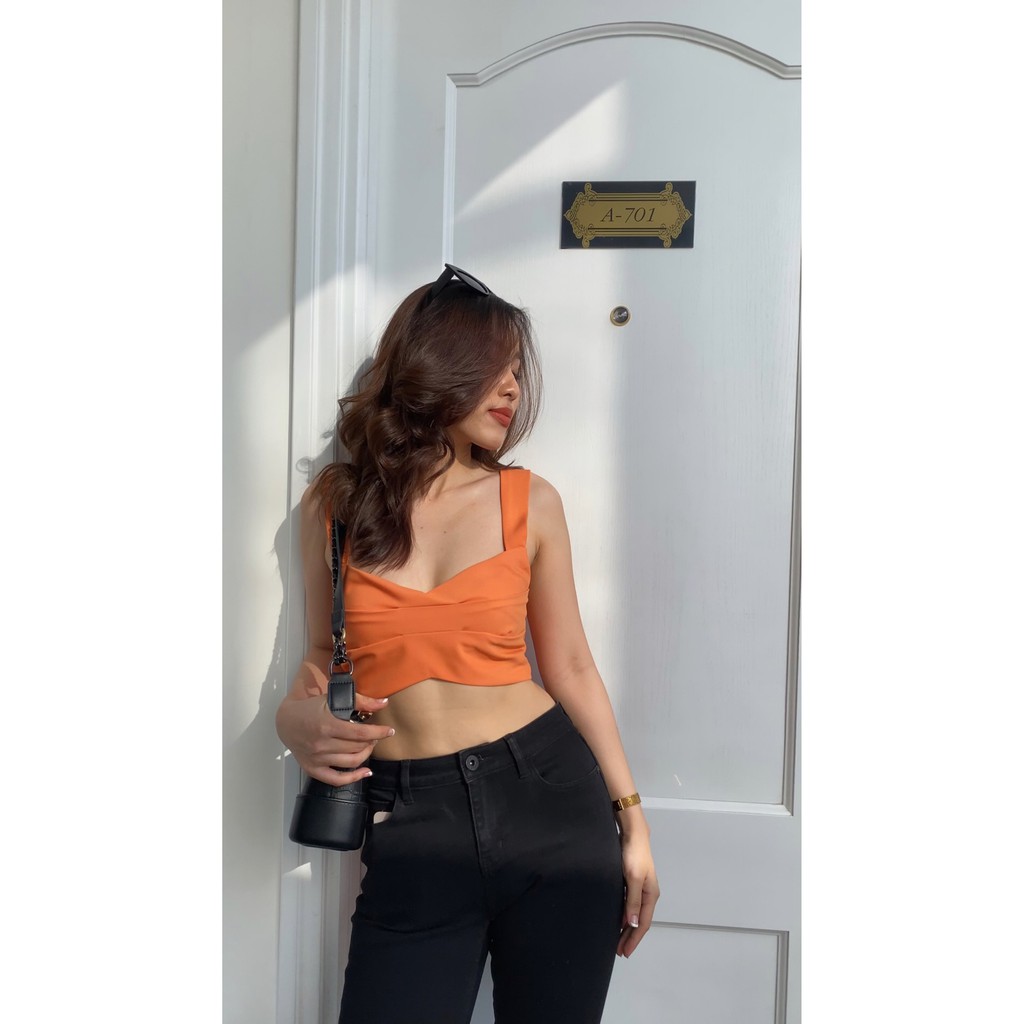 ELE Studios - Áo kiểu nữ tay phồng thiết kế cao cấp Freesize- Croptop GABRIEL đan dây lưng va cúp trước ngực- ELE