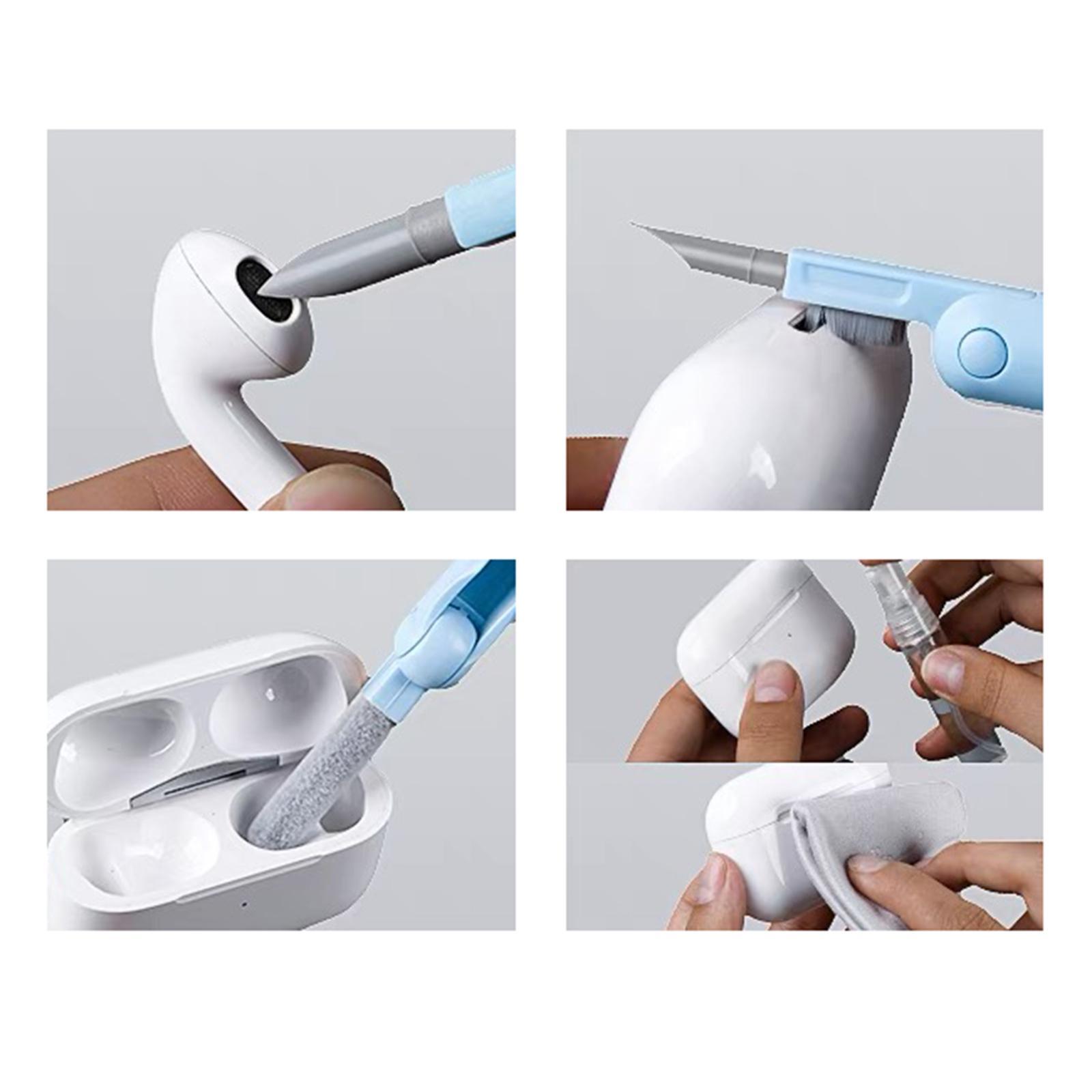 Description: Earphones Cleaner Set: Package includes multifunctional cleaning pen, keycap puller buckle, cleaning brush, empty spray bottle(without liquid) and screen wiper to meet various cl...